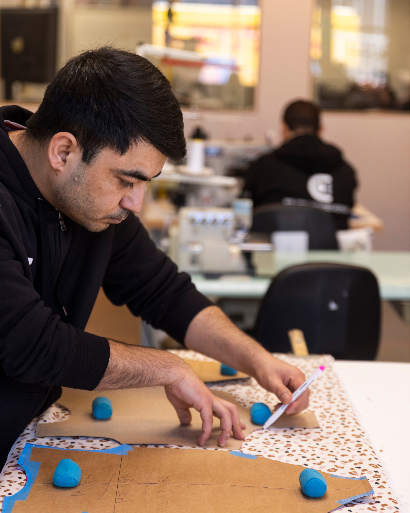 Il nostro laboratorio non è solo un luogo dove i prodotti prendono vita, ma anche uno spazio dove talento e crescita personale sono al centro. Offriamo a persone in difficoltà nel mercato del lavoro la possibilità di ricominciare, imparare abilità preziose e costruire un futuro. In un ambiente di lavoro sicuro e stimolante, imparano l'artigianato, il che li aiuta a fare il passaggio verso nuove opportunità nel mercato del lavoro. La nostra forza sta nella diversità! Persone di diverse nazionalità lavorano fianco a fianco, arricchendo la nostra creatività e innovazione.